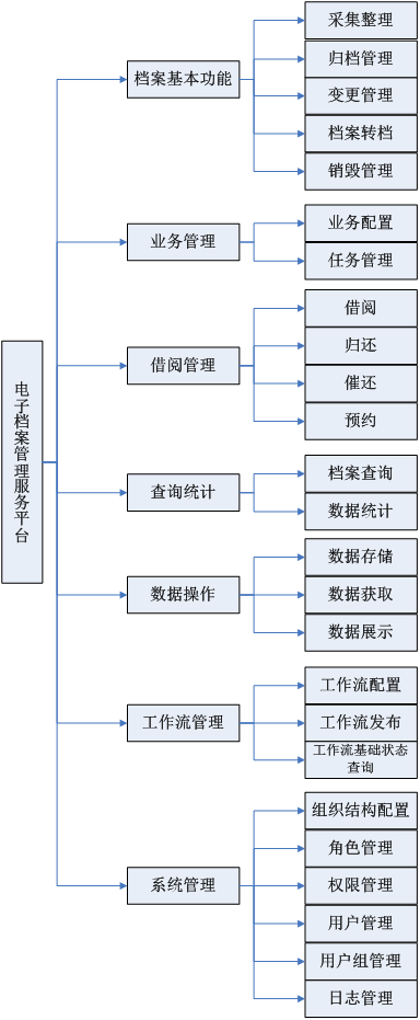 檔案管理系統(tǒng)主要分為:電子文件管理中心子系統(tǒng)、數(shù)字檔案管理子系統(tǒng)、檔案檢索子系統(tǒng),三大子系統(tǒng)。 具有系統(tǒng)設(shè)置、權(quán)限管理、數(shù)據(jù)錄入、整編組卷、檢索利用、借閱、銷毀、統(tǒng)計報表、數(shù)據(jù)轉(zhuǎn)換等功能模塊。 可在網(wǎng)絡(luò)環(huán)境下實時瀏覽檢索到的檔案文件、圖像、圖形等,還可在權(quán)限允許范圍內(nèi)下載檔案。可將檔案部門現(xiàn)有的檔案目錄管理系統(tǒng)中的數(shù)據(jù)直接轉(zhuǎn)入新的企業(yè)檔案管理系統(tǒng),可在系統(tǒng)中繼續(xù)管理上傳文件,提供借閱、歸還、催還等功能。